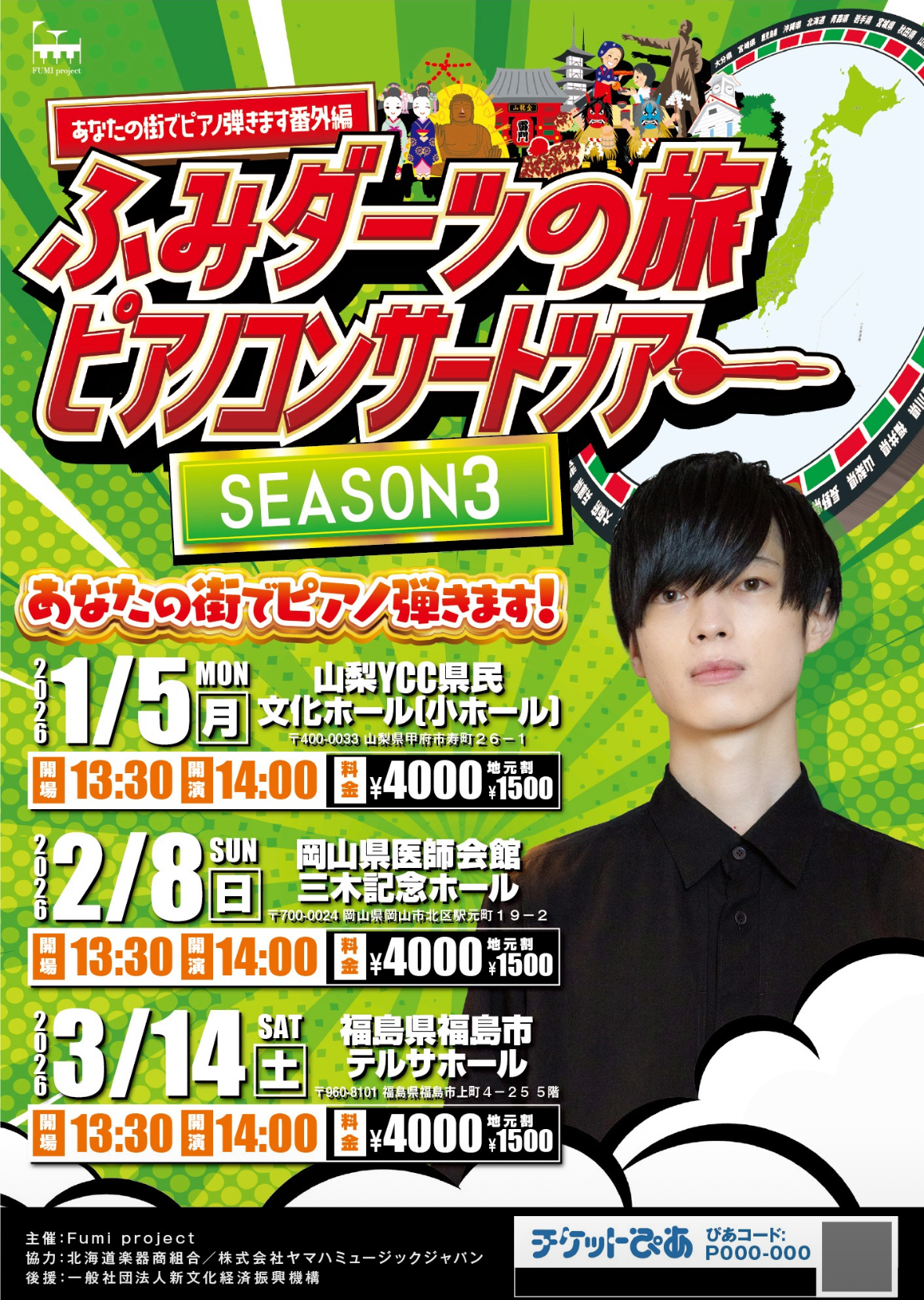 第1弾、第2弾と好評でしたダーツの旅ピアノコンサートツアーの第3弾が決定いたしました。