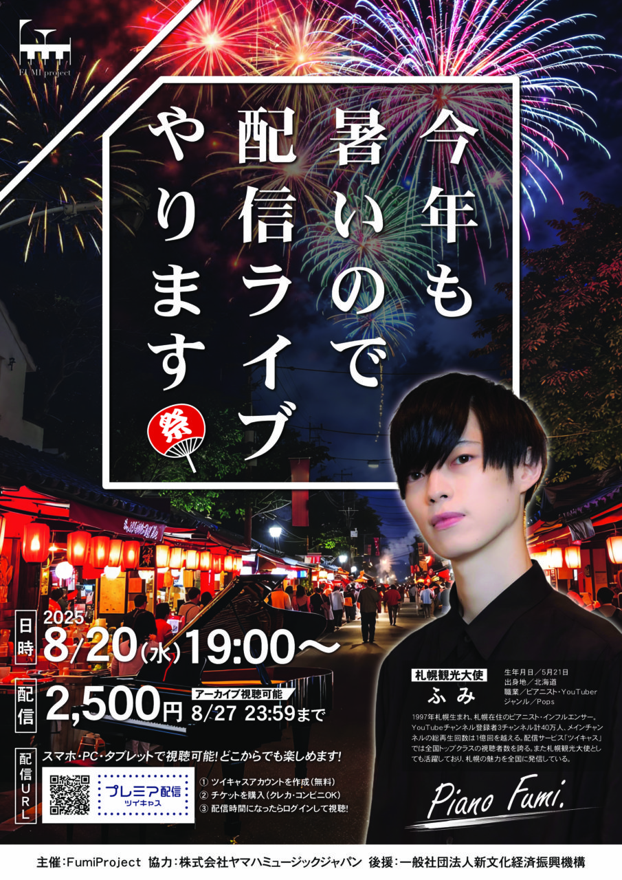 「ふみダーツの旅ピアノコンサートツアー」の第三弾開催決定!